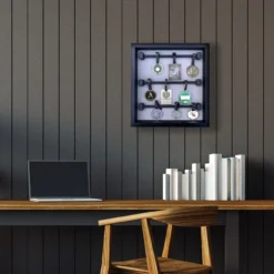 Our 40 bag tag display is handcrafted right here in the USA, and can be personalized by our staff to mark any occasion. Available in cherry or black finished hardwood, this handsome piece is an elegant way to show off your collection of bag tags. With a newly redesigned frame that allows the insertion of an optional acrylic cover, your tags will be protected from harmful sunlight, dust and curious onlookers alike.