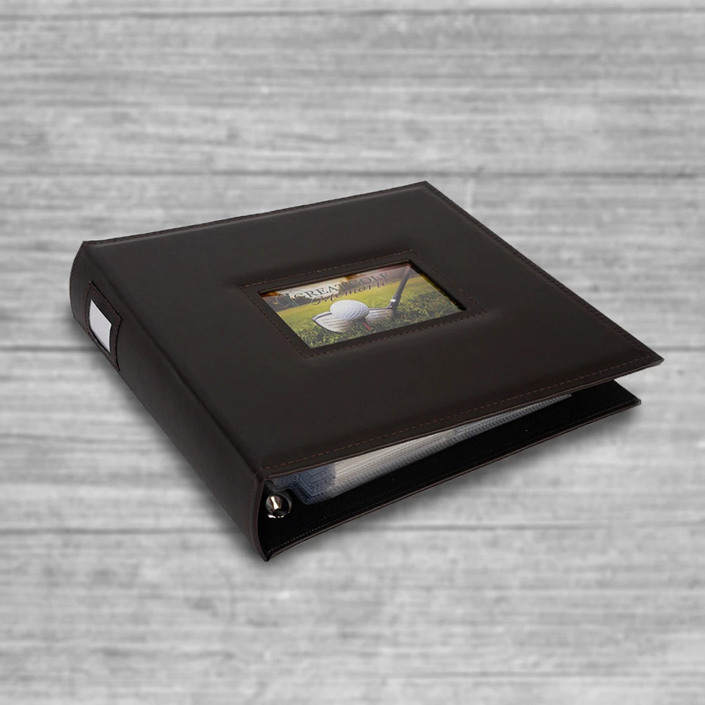 Whether you’re creating a collection for a specific person, or just trying to remember where and how well you played, a golf scorecard album can help keep your great golf memories alive. This handsome Endurahide-bound (available in black and brown) album will hold up to 130 of your chosen scorecards and golf photos, and can even be personalized in house with a small engraved plate. With a front “window” to show off that prized 4×6″ card, and 25 pages inside to make room for the rest, it’s time to organize those memories.