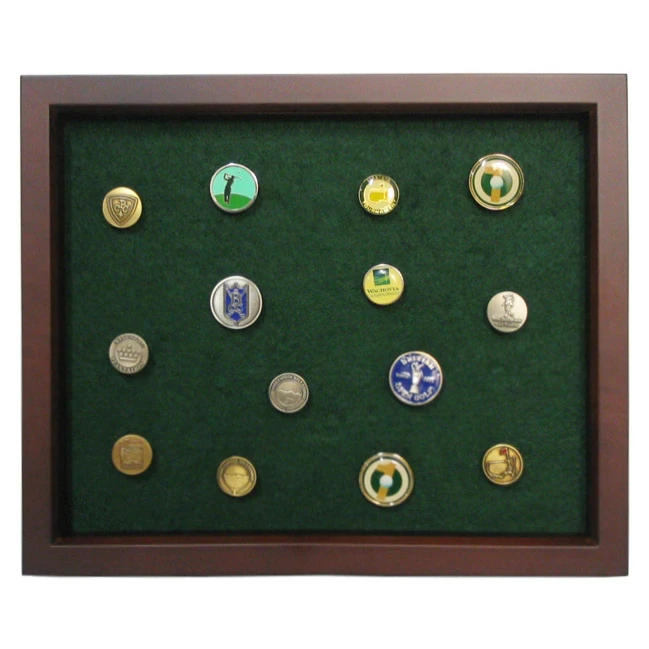 This golf ball marker display frame will let you proudly display your collection with our easy-to-use magnets. Felt covers a metal sheet that our ball marker holders strongly cling to, letting you add, remove, and reorganize your collection as it grows. The acrylic cover that easily slides in will protect your collection from harmful sunlight, dust, and curious onlookers alike. It includes 20 golf ball marker magnets for flat-style markers.