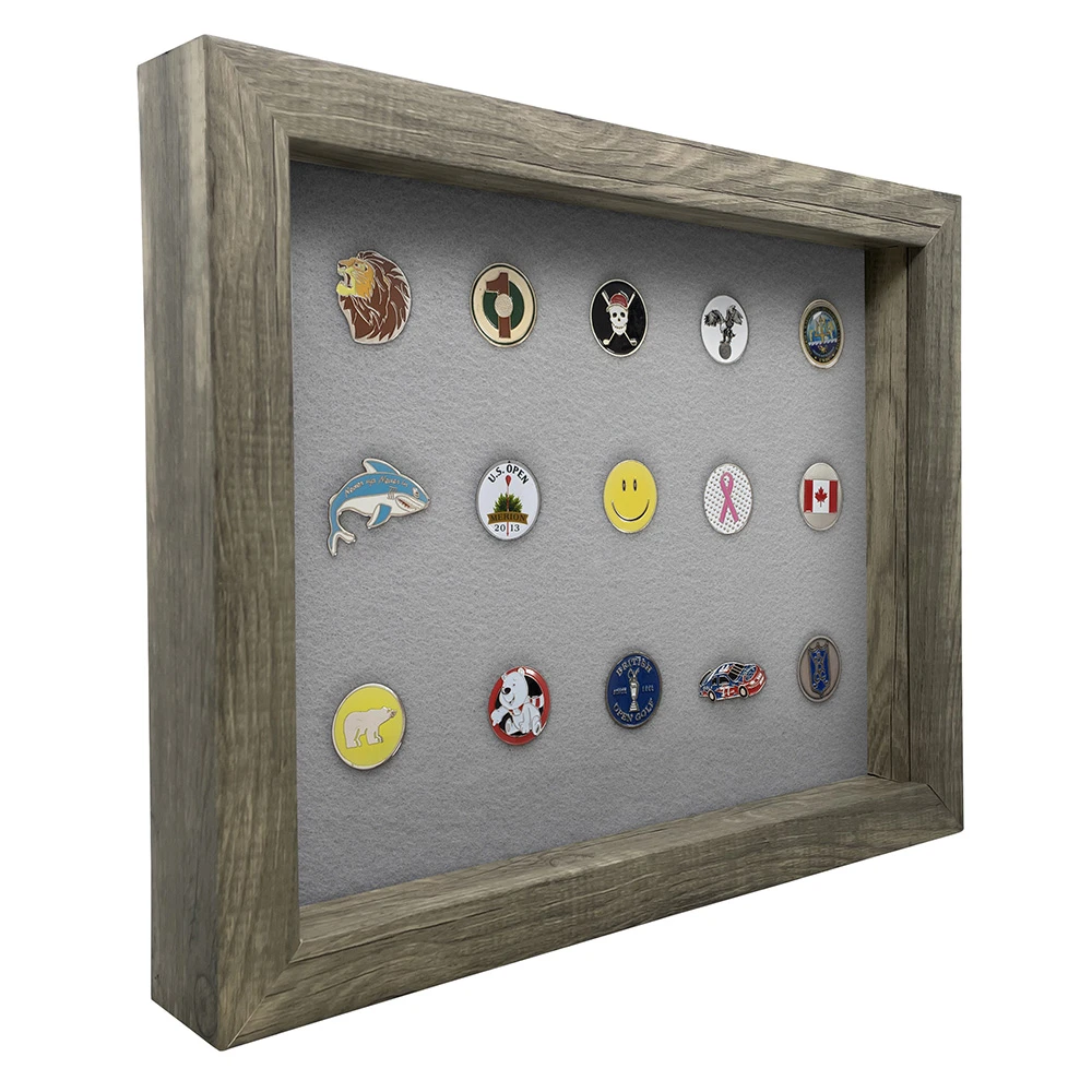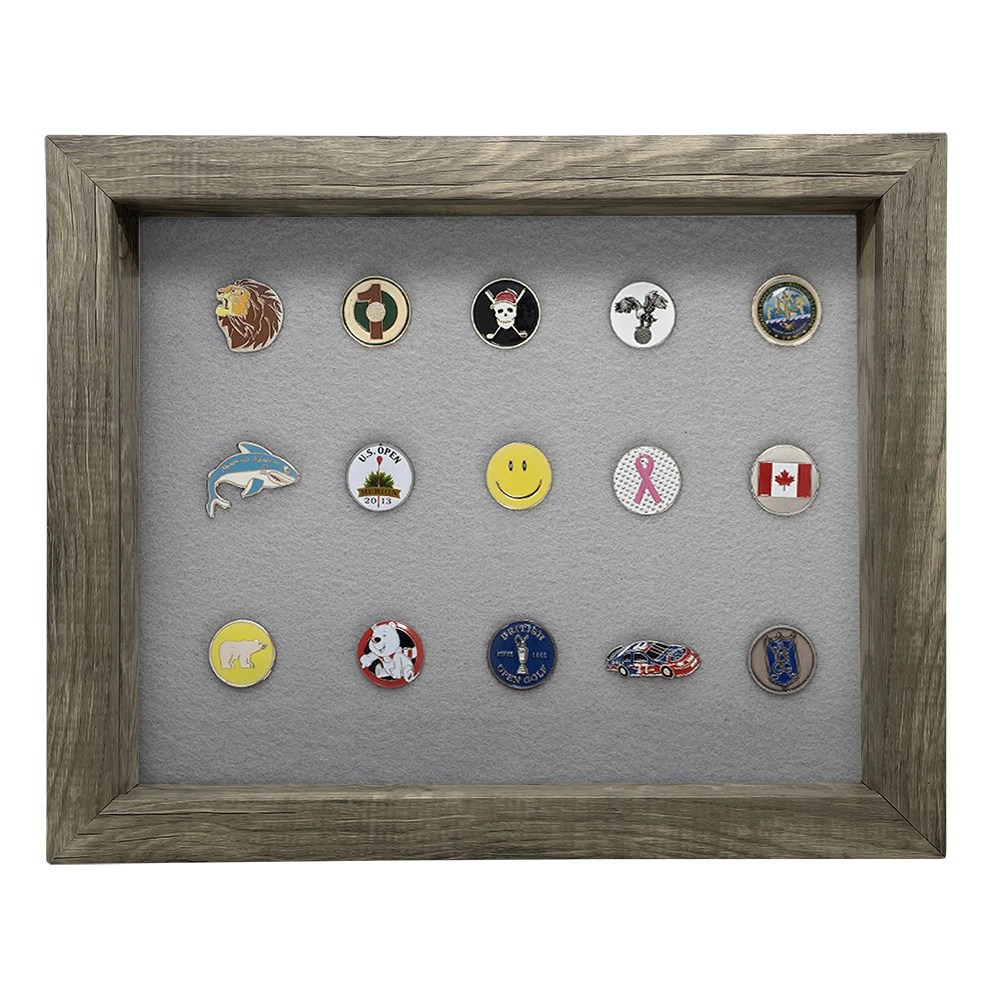 This golf ball marker display frame will let you proudly display your collection with our easy-to-use magnets. Felt covers a metal sheet that our ball marker holders strongly cling to, letting you add, remove, and reorganize your collection as it grows. The acrylic cover that easily slides in will protect your collection from harmful sunlight, dust, and curious onlookers alike. It includes 20 golf ball marker magnets for flat-style markers.