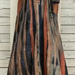 Women Striped Casual Autumn Natural Lightweight Daily Polyester Fibre A-Line Regular Size Dress